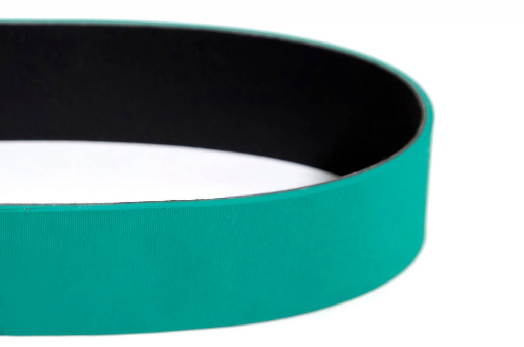 Correas de elastómero y tejido Correas de caucho nitrílico (NBR) con tejido de Nylon para aplicaciones sometidas a muy alta abrasión como plegadoras y transportadoras de papel, offset y rotativas en la industria gráfica. Caucho nitrílico en ambas caras para transmisiones ligeras, correas alimentadoras, reguladoras y cortadoras. También para plegadoras encoladoras de cajas de cartón. Doble cara de caucho nitrílico carboxilado (XNBR) para correas tangenciales para la industria textil. Transmisiones múltiples. Elastómero y Nylon para transmisiones de dos poleas.